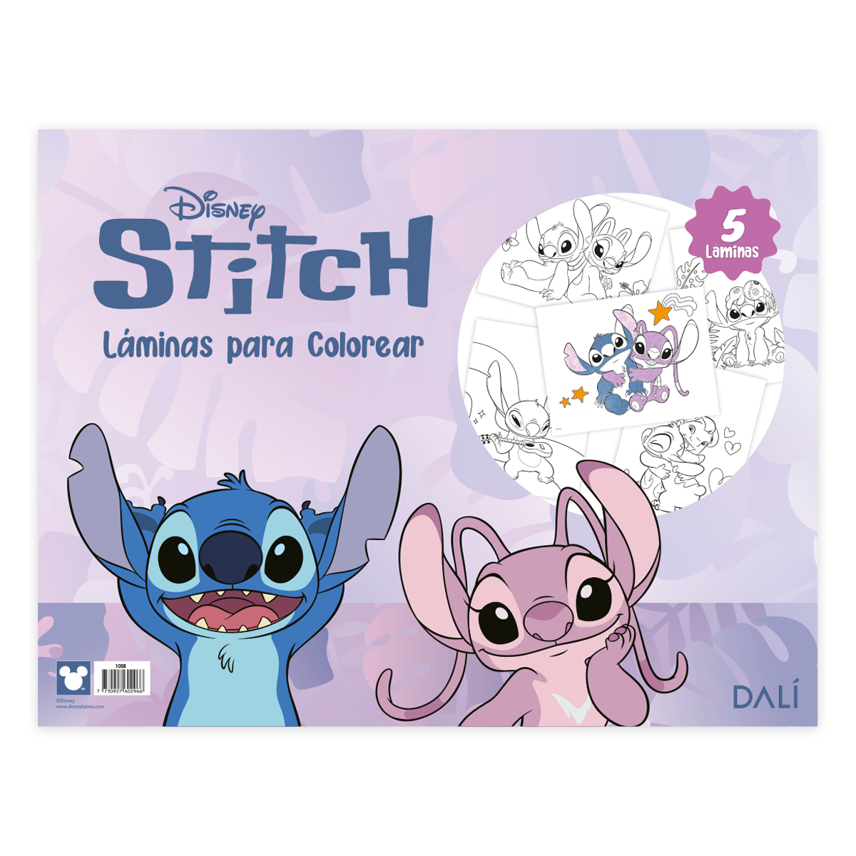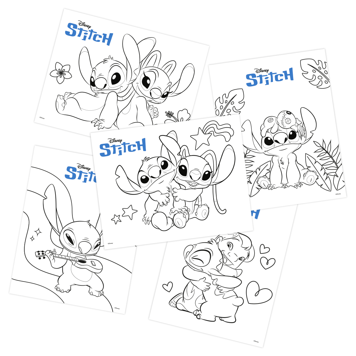 5 Cartulinas grandes para colorear de 150gr con motivos de lilo, stitch y angela
