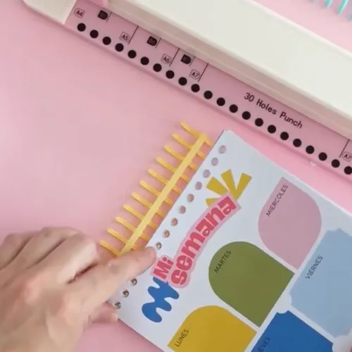 Su tamaño A4 y su guía de deslizamiento permiten la elaboración de encuadernados en diversos formatos: A4 (30 orificios), A5 (22 orificios), B5 (26 orificios), A6 (16 orificios), B7 (14 orificios), A7 (12 orificios), etc,